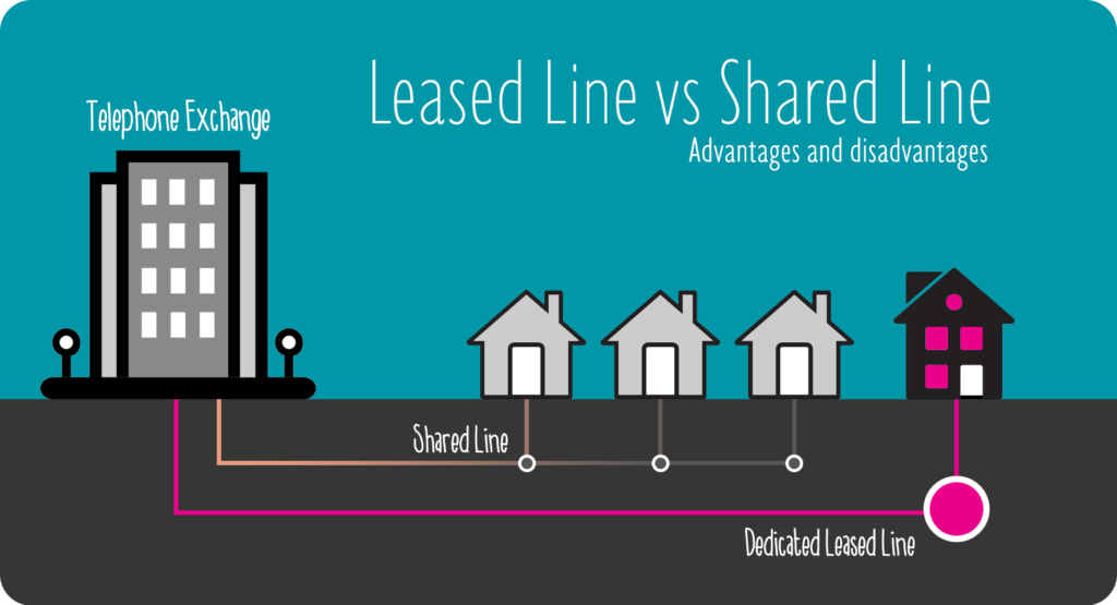 A leased line is an allocated circuit between two points of communication. It is always switched on and rented for a monthly charge or according to the service provider’s terms. Leased lines are exclusive, allocated, and dedicated. This means that the associated bandwidth is exclusive for personal and business use.